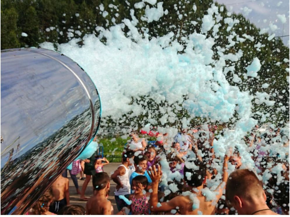 La atracción mas refrescante y esperada por niños y no tan niños, imagina un dia de sol, todos tus amigos y familiares desde tu hijo hasta tu abuela, todos juntos bailando, cantando, brillando el sol cubiertos de espuma!